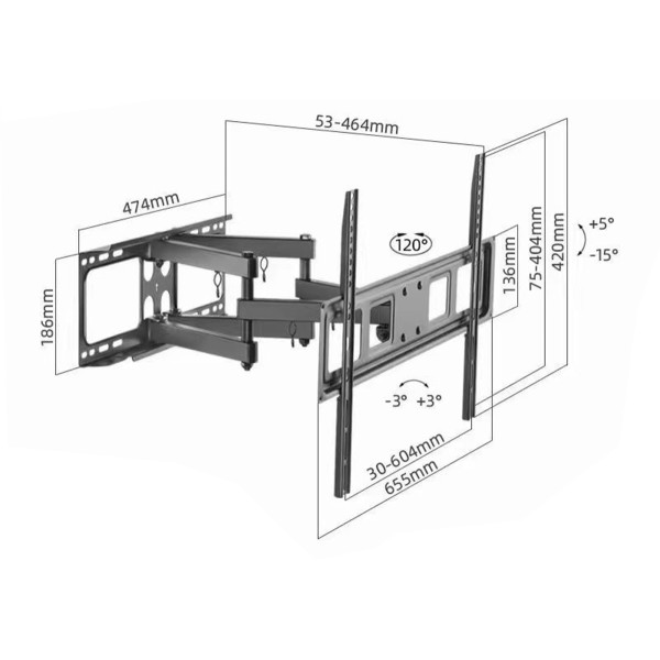 Η βάση τοίχου με βραχίονα μπορεί να χρησιμοποιηθεί για την τοποθέτηση τηλεοράσεων από 37, μέχρι και μεγάλες 80 Ιντσών.